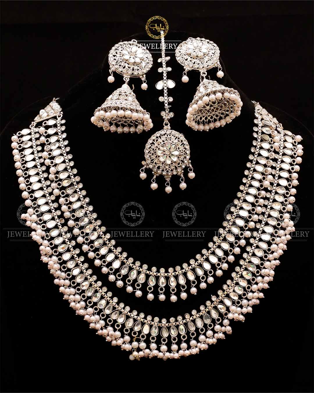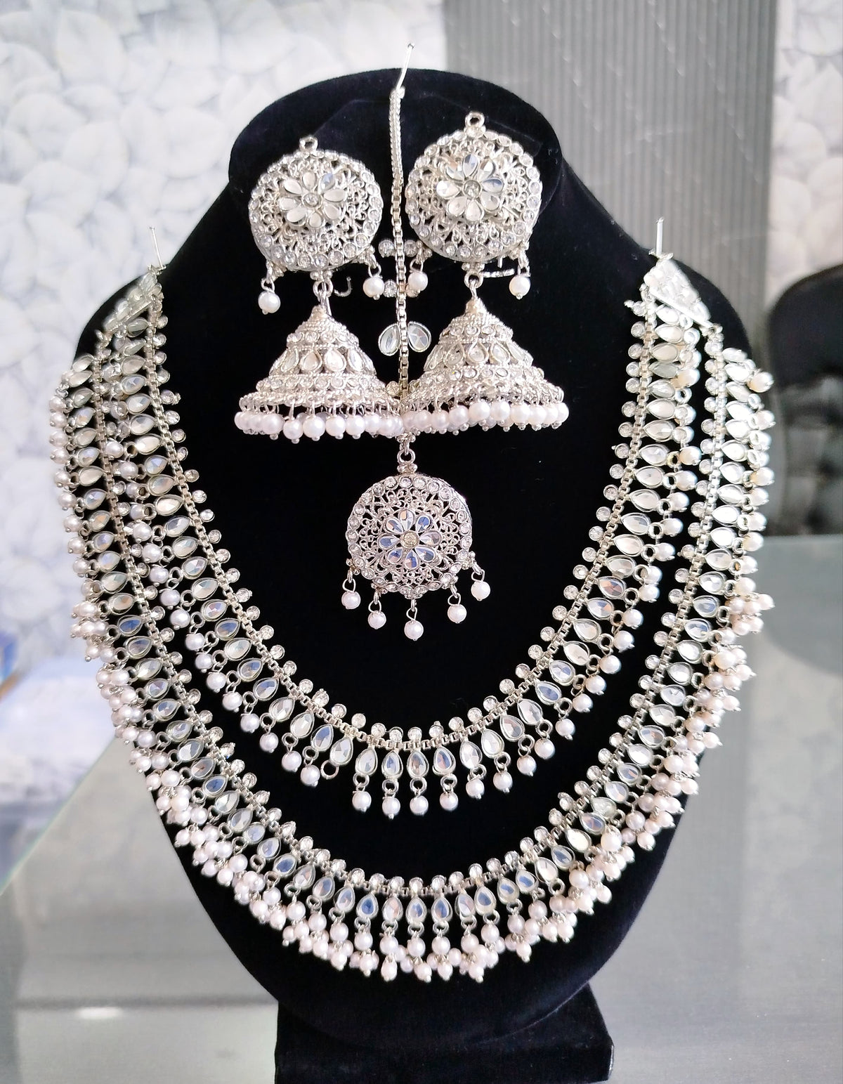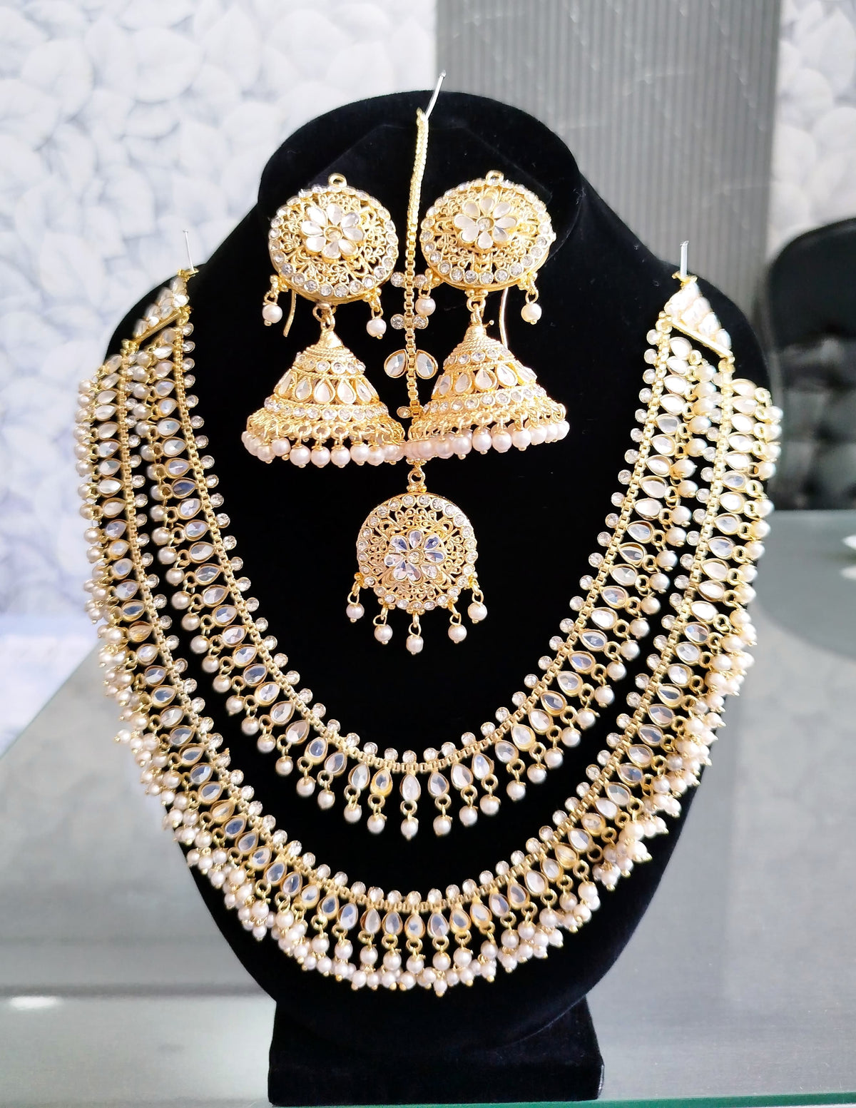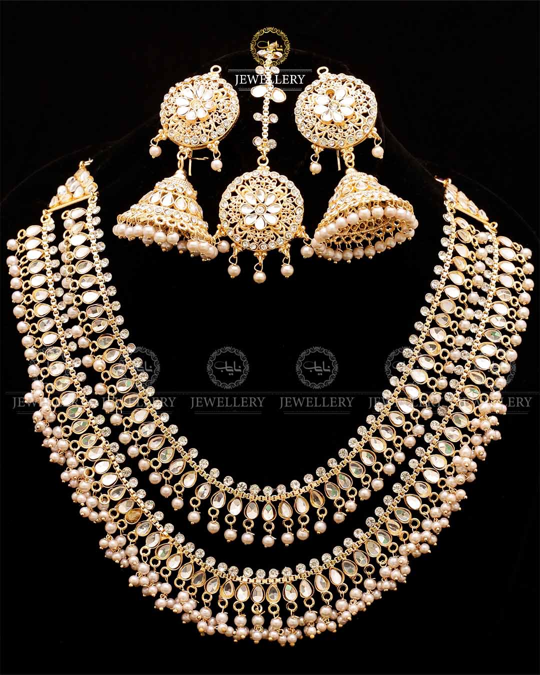 2 layers Kundan Mala with Jhumka Tika-2523 - Golden