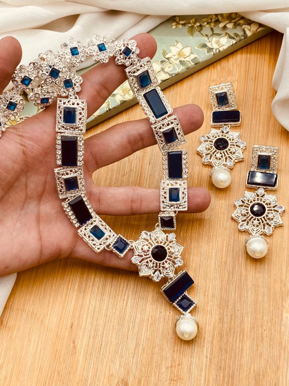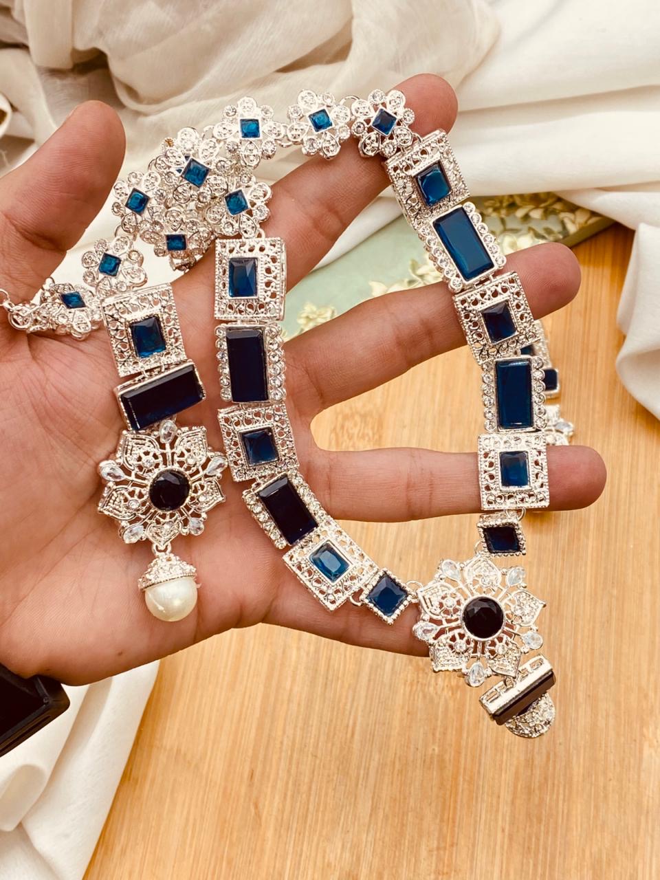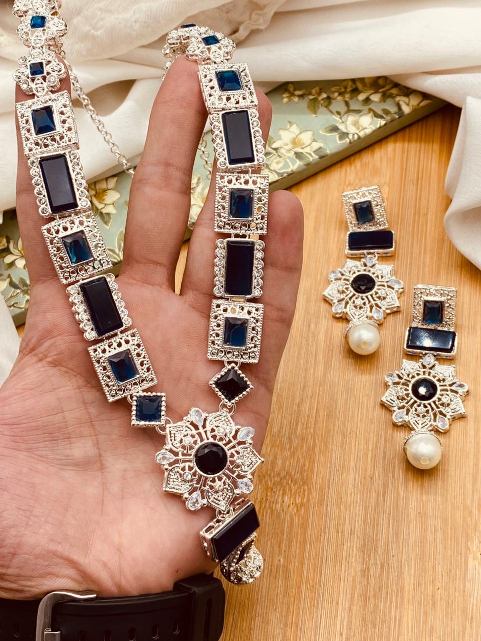 Silver Star Fancy Mala Set with Earring NJ-1557-Silver